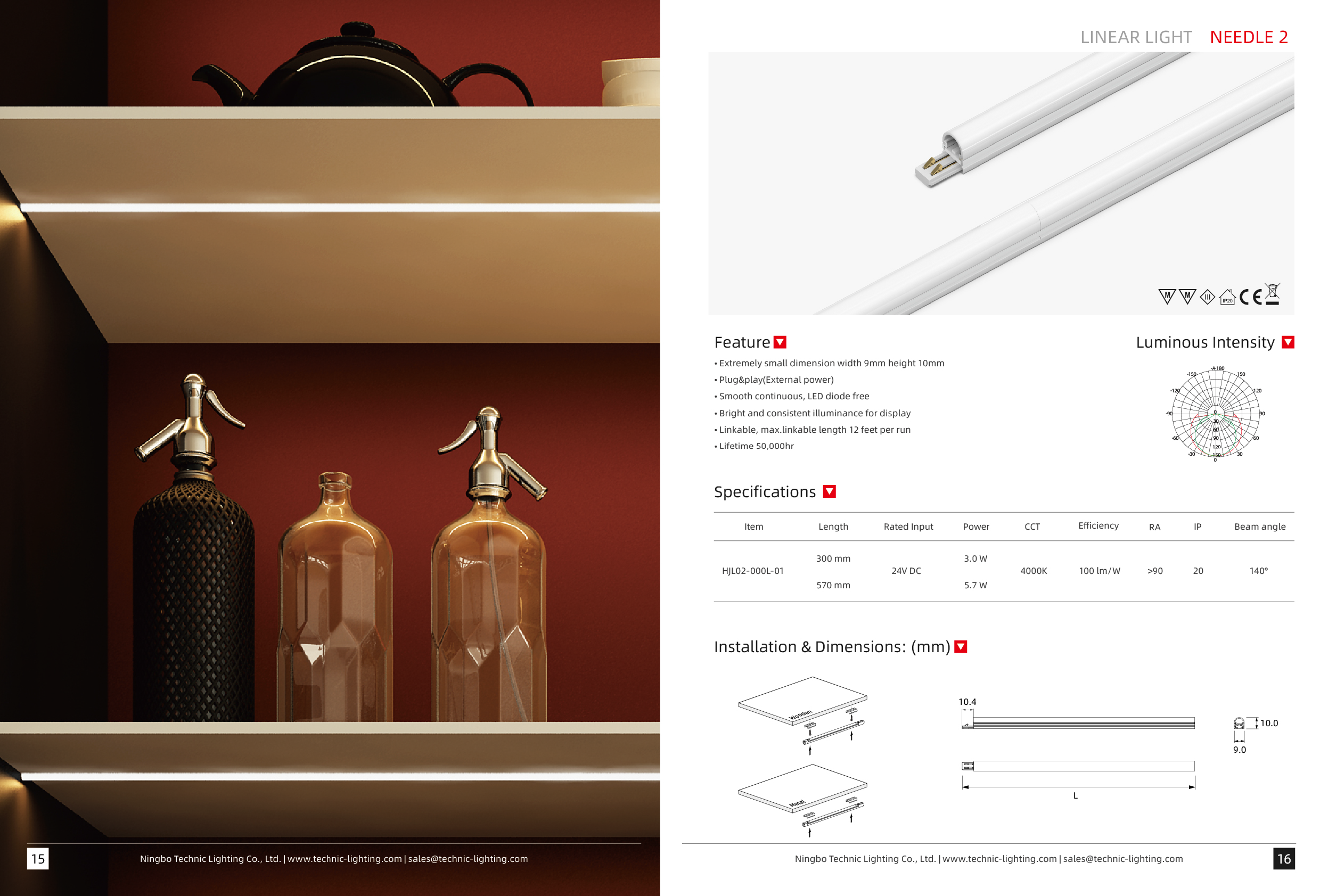| HJL02-000L-01 | 300mm 570mm | 24VDC | 3.0W 5.7W | 4000k | 100 lm/w | >90 | 20 | 140° |