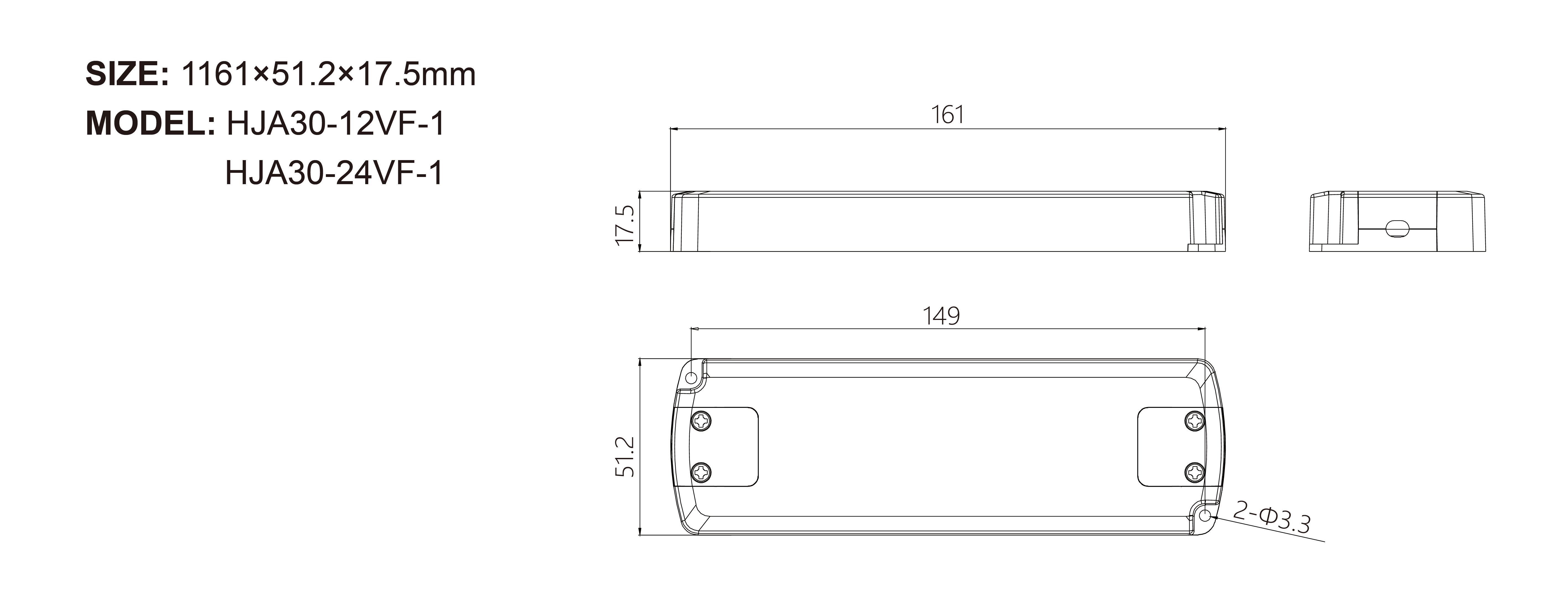 | HJA30-12VF-1 | 220-240Vac | 0.95 | 12V | 0-2.5A | CV | -20…+45℃ | 85℃ | 161×51×17.5 | ENEC TUV |
